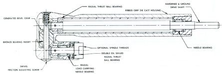 A truly "all angle" 360° swivel head type of tool designed for all standard duty drilling operations. Incorporates the same fine workmanship and design features as other tools. |